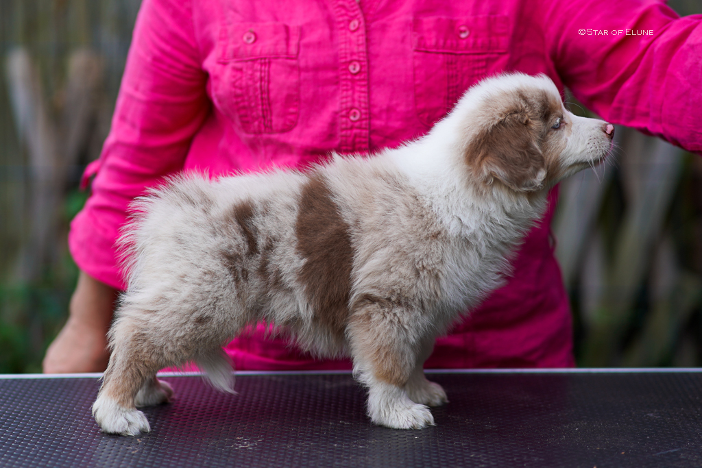 With an ideal height of 39.5 cm (39-41 cm is an extremely desirable height) this wonderfully colored, red merle male is the perfect partner for our BUFFY.